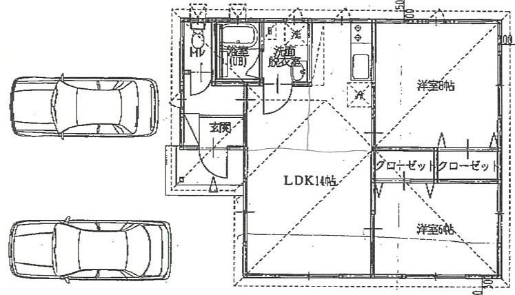 詳細間取り LDK14帖、洋室8帖、和室6帖、クローゼット、洗面所脱衣所、ユニットバス、水洗トイレ